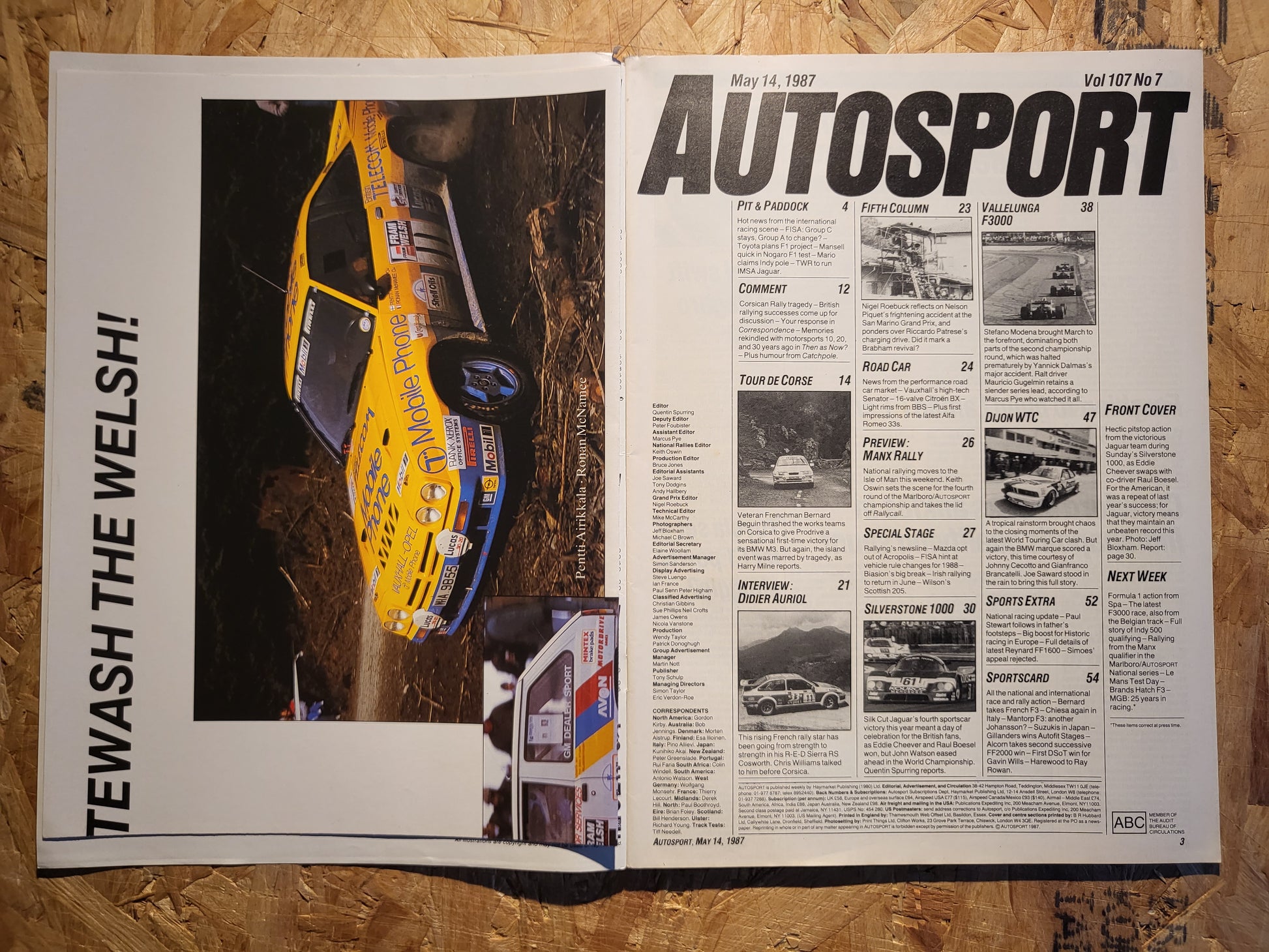 Autosport Magazine 14 May 1987 (1035) POSTER Vallelunga F3000 Vauxhall Senator Alfa Romeo 33