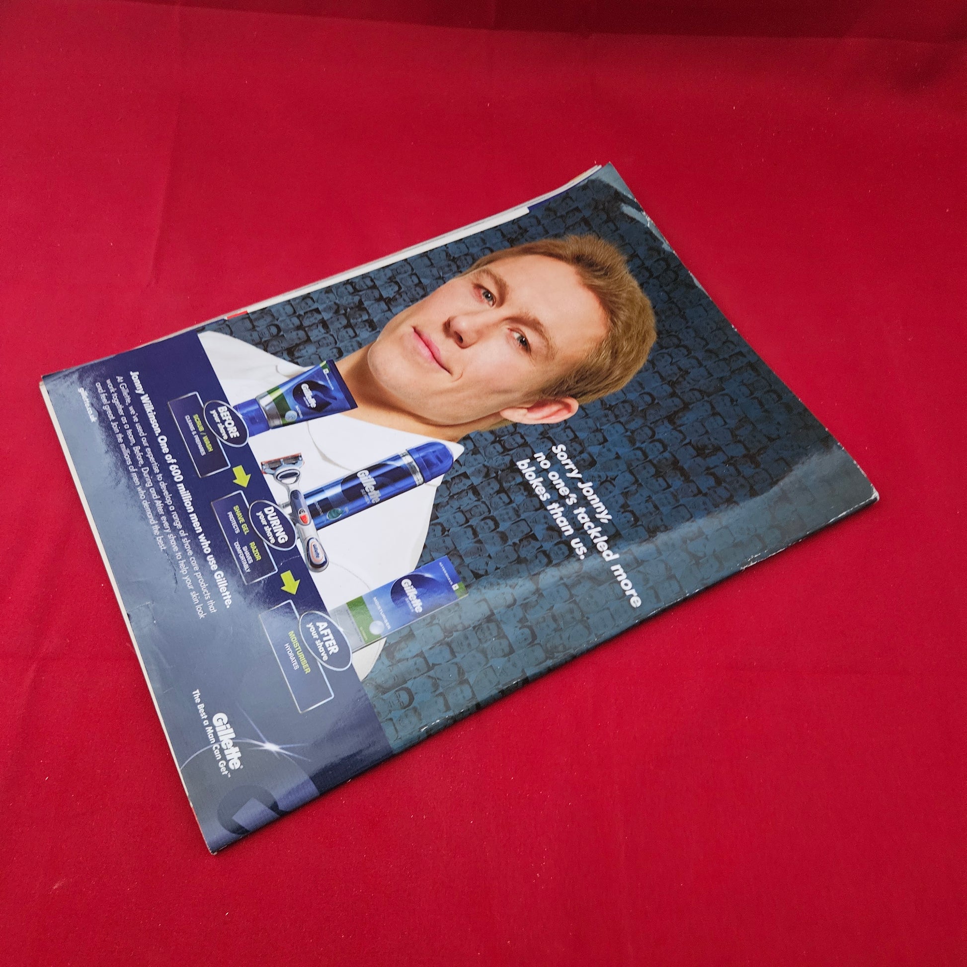 Vintage Adverts: The back cover features a classic Gillette advertisement starring rugby legend Jonny Wilkinson.